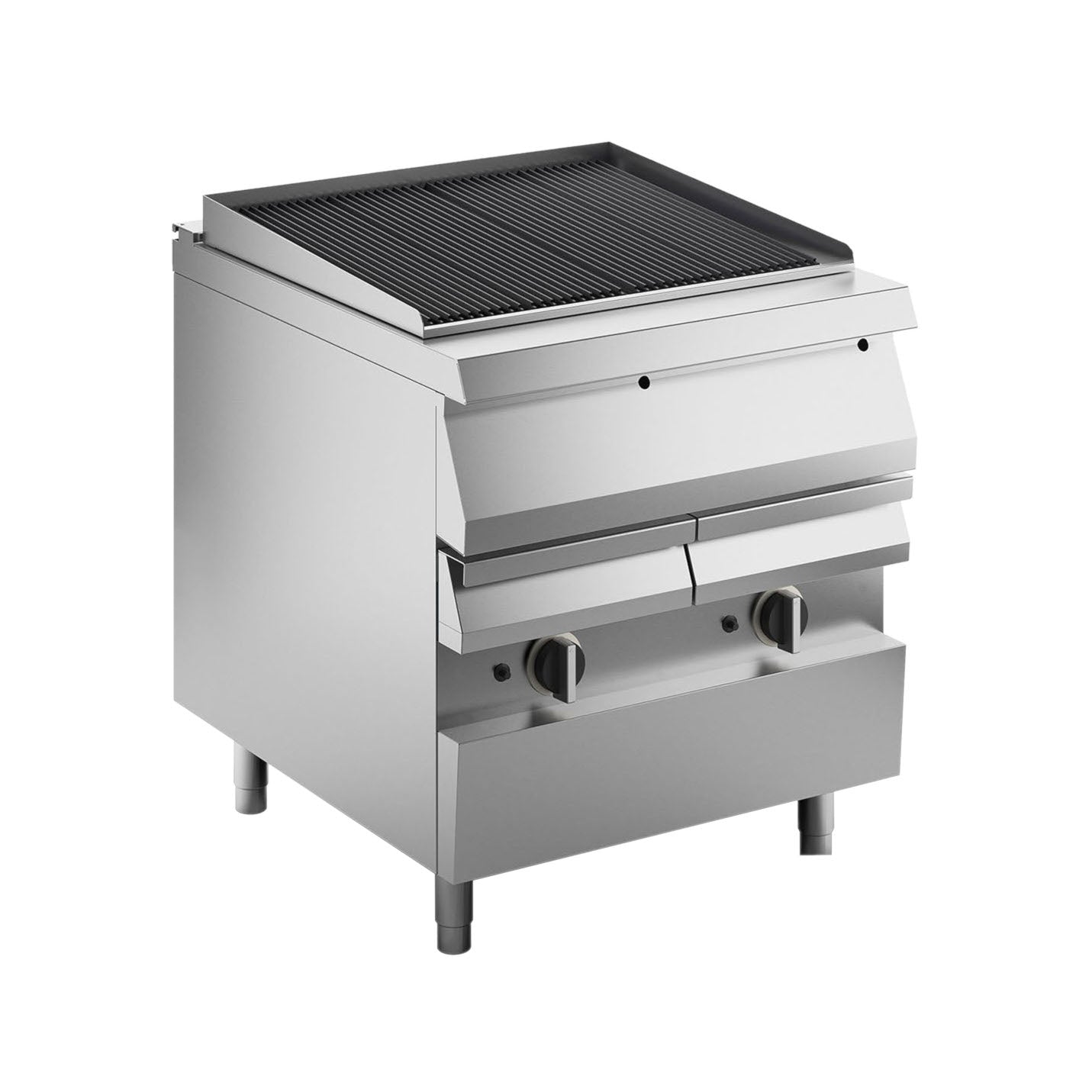 Vorwärtsneigung zum Garen von fettreichem Fleisch, mit 4 mm Heizelementen im direkten Kontakt und einer Fettauffangschale.