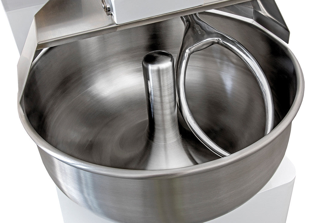 Der Gabelmischer ist das ideale Werkzeug für Pizzabäcker, Konditoren und Bäcker und ist mit einer Schüssel, einer Antriebswelle und einer Gabel aus Edelstahl AISI 304 ausgestattet.