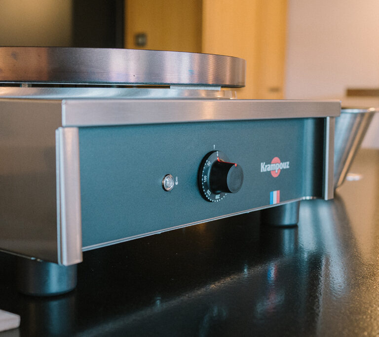 Ein einzigartiges Krampouz-Verfahren: Heizspiralen sind in die Kochplatte eingelassen, um eine gleichmäßige Wärmeverteilung im Gusseisenkern zu gewährleisten. Dies sorgt für gleichmäßige Hitze und hervorragende Kochergebnisse.