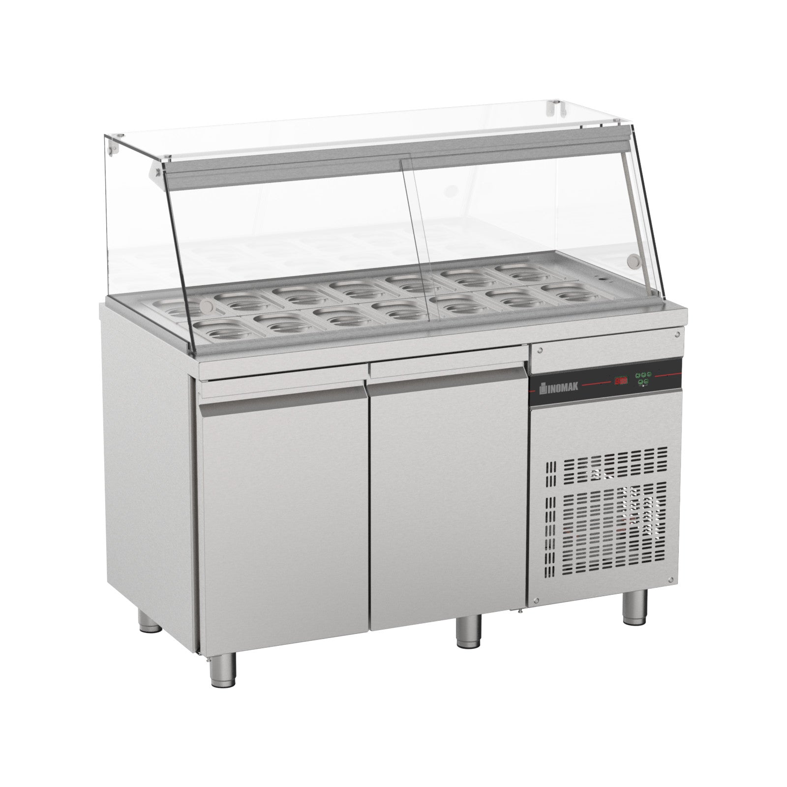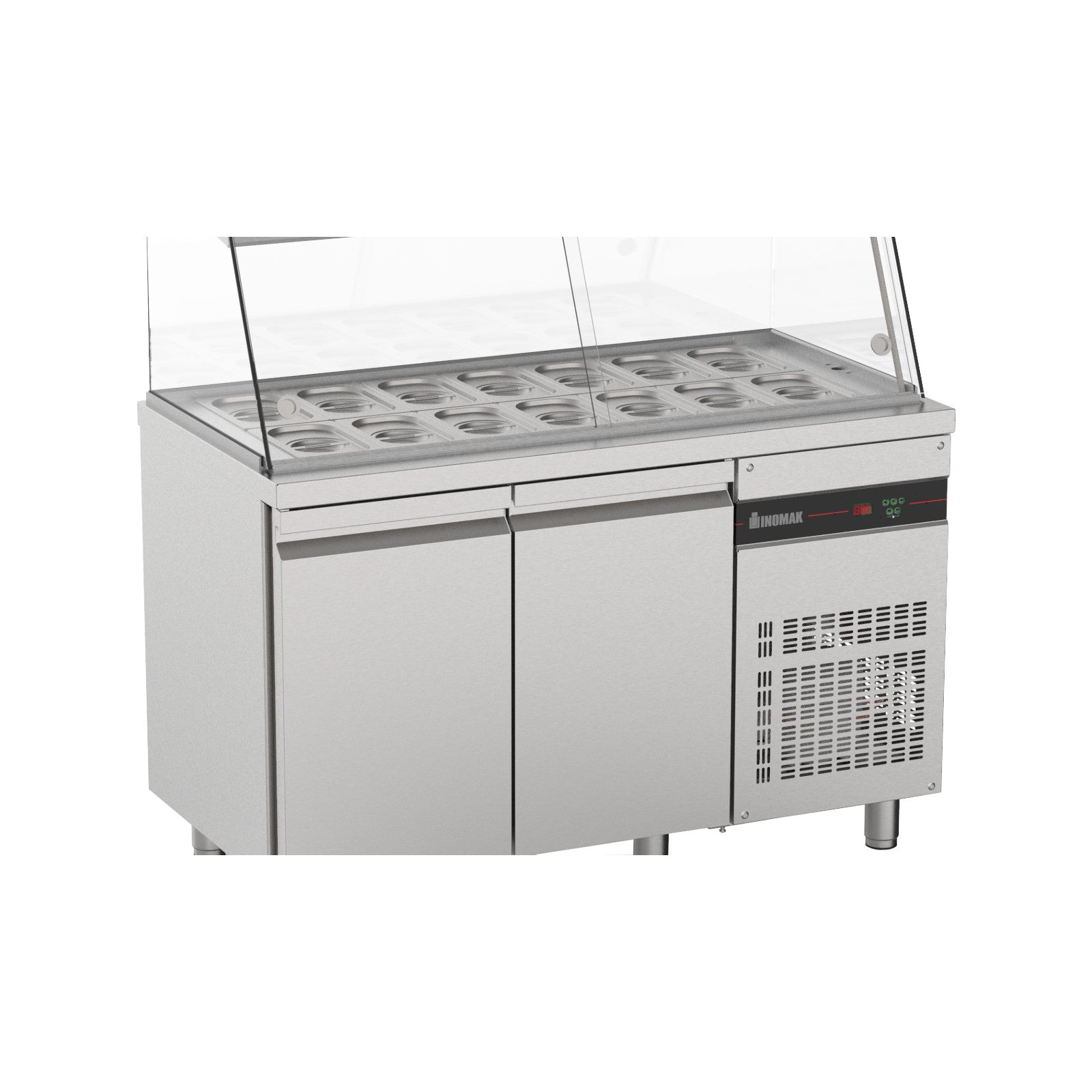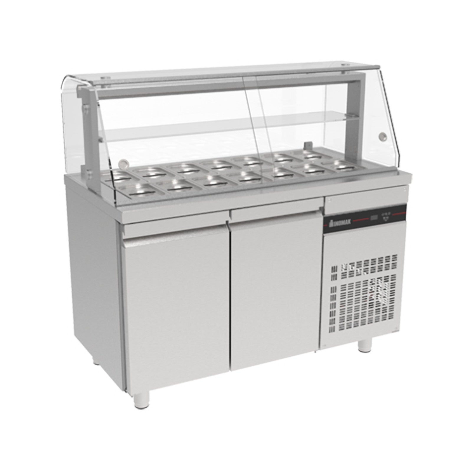 0784 111 212 Die Serie Zenobia besteht aus Saladette-Arbeitsplatten mit dem Kühlaggregat auf der rechten Seite, wodurch Platz für die Installation weiterer Geräte bei Bedarf geschaffen wird.