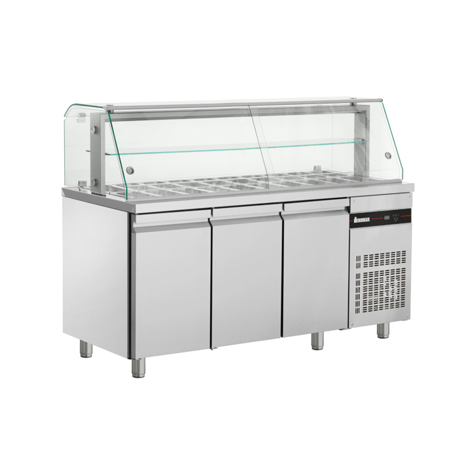 0784 111 212 Die Serie Zenobia besteht aus Saladette-Arbeitsplatten mit dem Kühlaggregat auf der rechten Seite, wodurch Platz für die Installation weiterer Geräte bei Bedarf geschaffen wird.