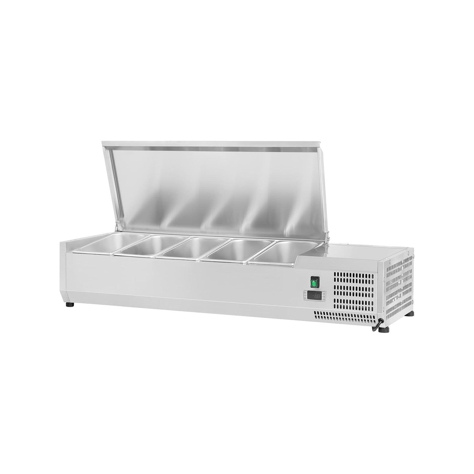 Gekühlte Vitrine für Pizza-/Salatzutaten, aus Edelstahl, mit Glasschutz, GN 1/4 H=150 mm Kasserollen, statische Kühlung, digitale Temperaturanzeige, elektronischer...
