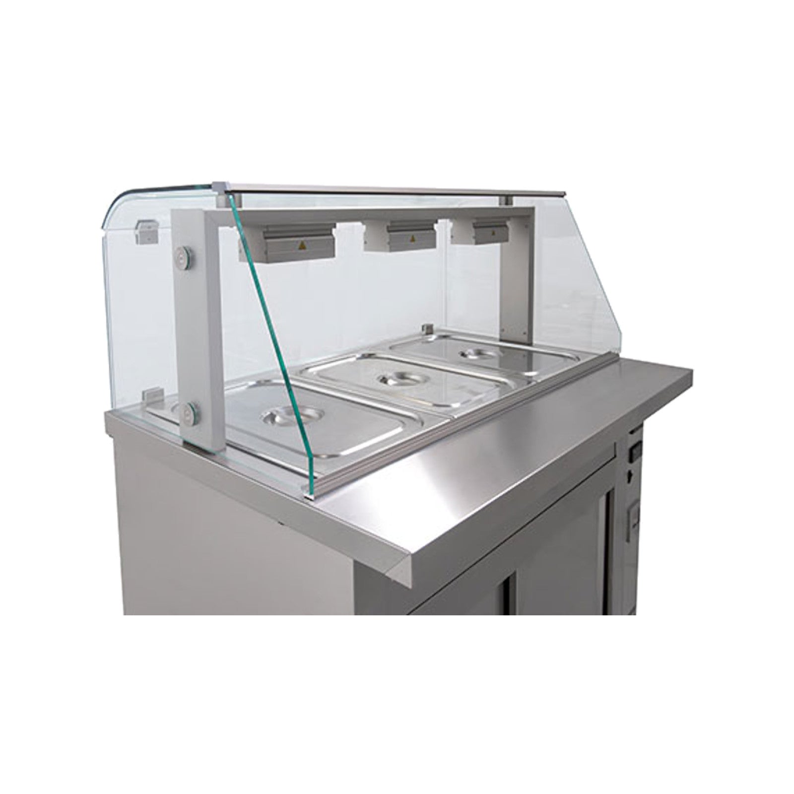 Bain marie cu dulap neutru închis, vitrină și uși glisante.