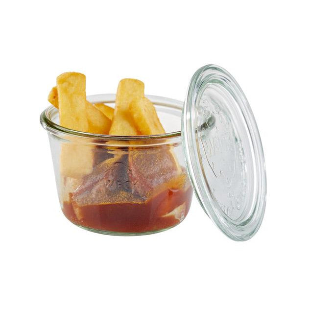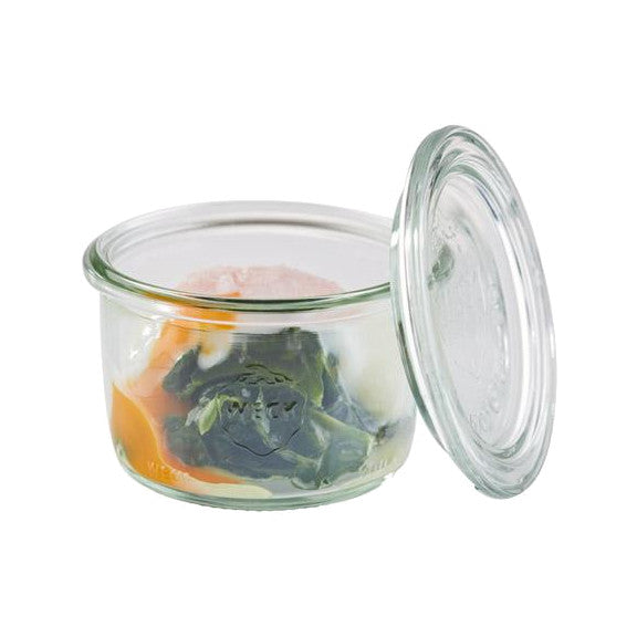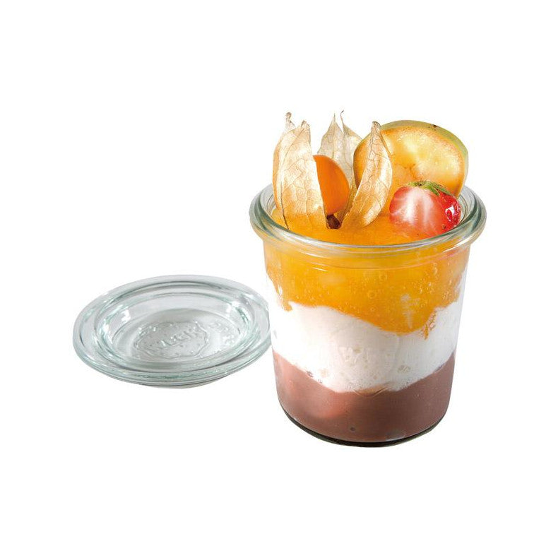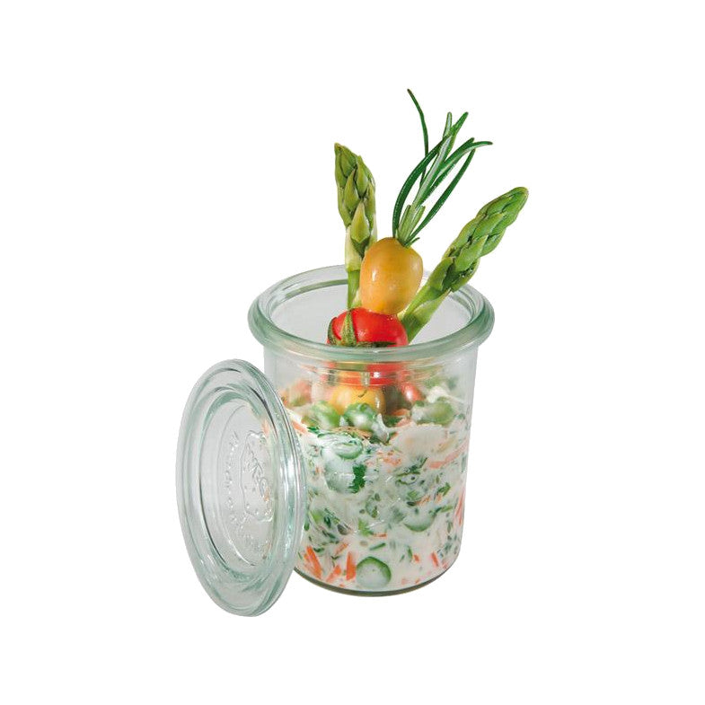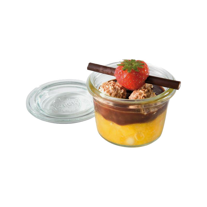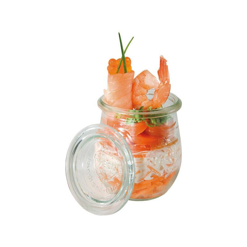 The Weck jar is used for presenting and serving appetizers, side dishes, salads or desserts, perfect for presenting culinary preparations at breakfast or organized buffets.