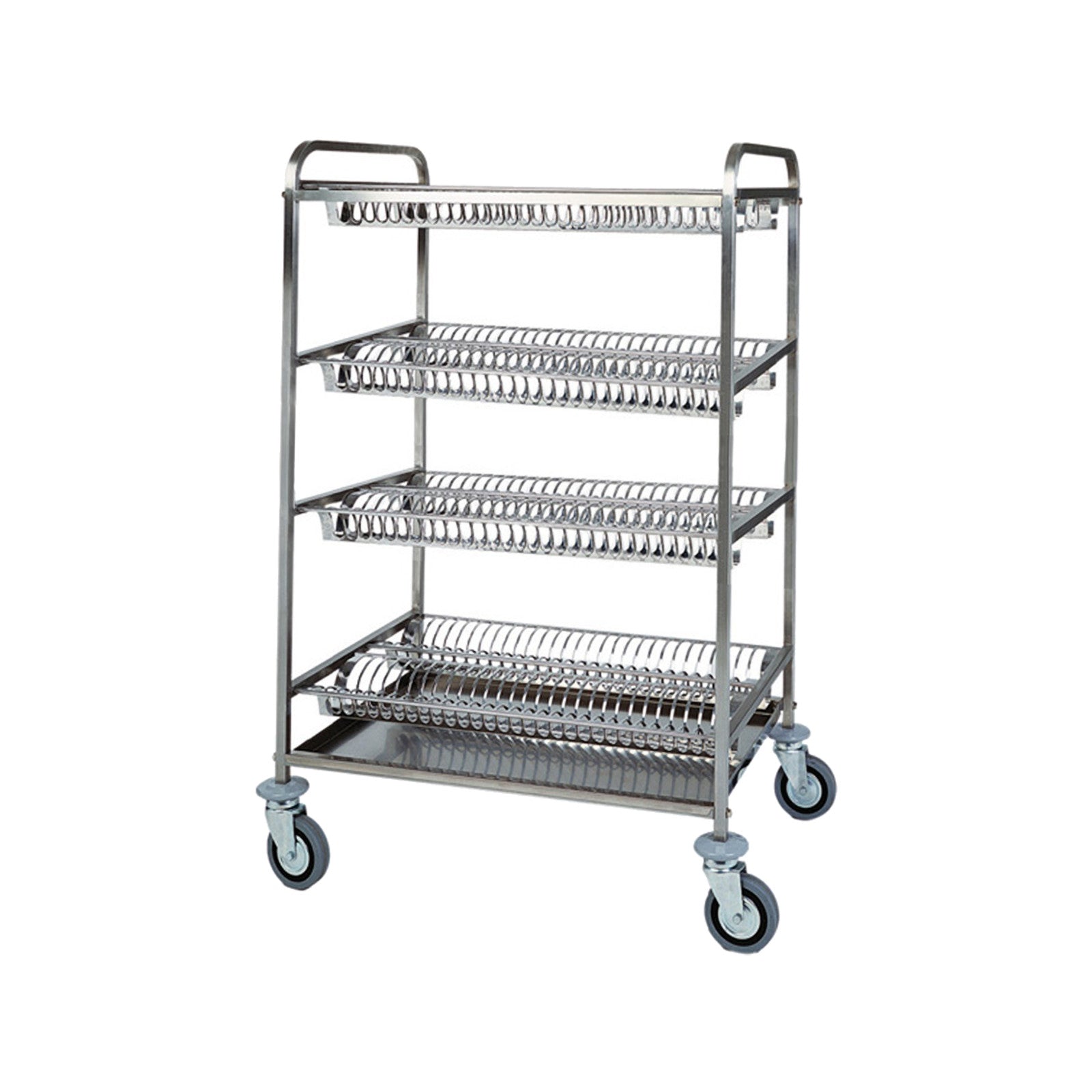 Trolley for draining plates and glasses. Stainless steel tubular frame Stainless steel plate racks Stainless steel drip trays...