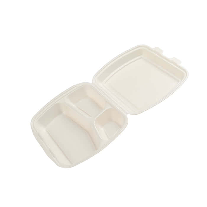 Polystyrene casseroles with compartments are useful for packaging takeaway meals because they keep food separate and fit into plastic bags for transport.