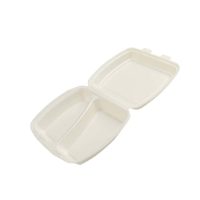 The MB/Flip Lid Styrofoam Divided Casserole is insulated to maintain proper food serving temperatures, ensuring customer satisfaction as well as food safety, and the foam material makes it a cost-effective option over other materials. The one, two, or three separate compartments can help you easily organize and store a double-sided main course! Convenient and efficient, these white foam casseroles - polystyrene compartmented casseroles are perfect for takeaway service or for packaging customer products. From orders of bacon and cheese fries to paninis at your coffee shop, this disposable casserole is a reliable and convenient product for your business. The square design creates a large surface area for family-sized side orders, appetizers, burgers and fries, kids' meals, and more! Featuring a hinged lid, this disposable polystyrene casserole can be closed quickly and easily to keep up with the fast-paced restaurant environment. With two secure latches, this sealed container is protected against accidental openings and spills during transport, giving guests peace of mind knowing their meal is well-preserved. Plus, the insulated foam construction ensures your customers’ food stays hot or cold until they’re ready to eat, plus the foam material makes it a more cost-effective option than other materials. Customers can easily remove the perforated lid, allowing them to use the container as a plate and eat directly from the container. With the lid out of the picture, customers can fill their table with more delicious food!