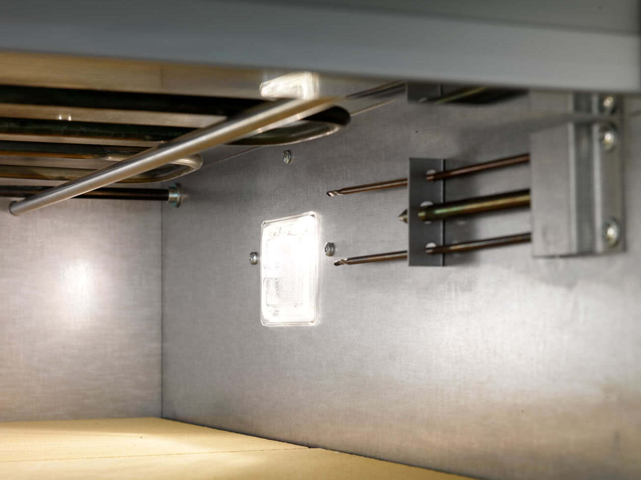 Electromechanical control system with the possibility of setting the temperature of the chamber and the cooking floor independently.