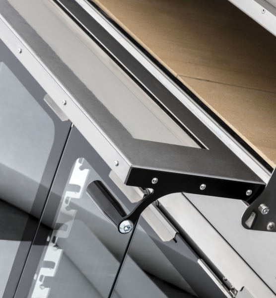 This version offers the advantage of a large glass door to allow maximum visibility inside.