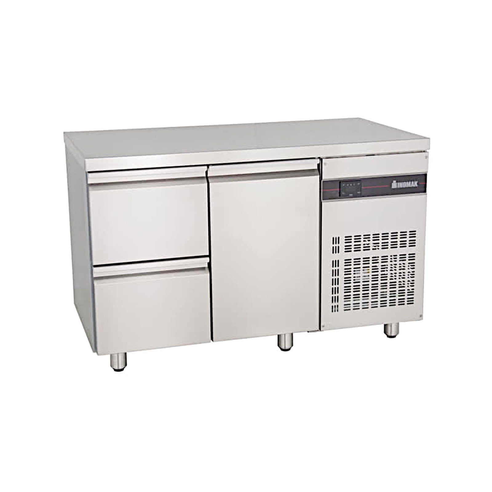 Cold table with 1 door, 2 GN1/2 drawers, side unit, stainless steel finish, Line 700, Inomak