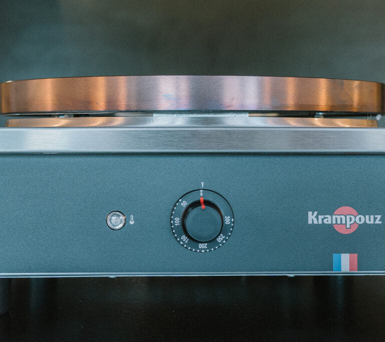 A unique Krampouz process: coil heating elements are embedded in the cooking plate to ensure even heat distribution to the cast iron core. This allows for even heating and excellent cooking performance.