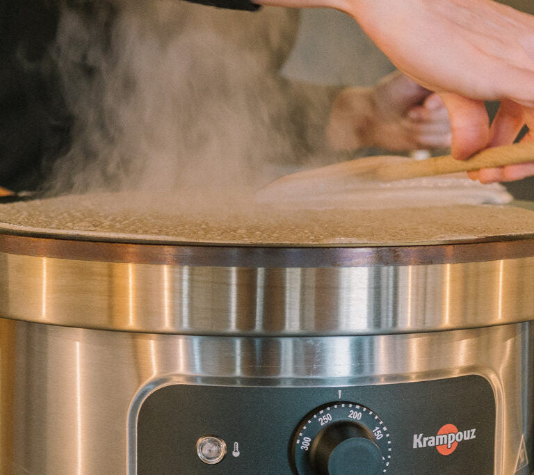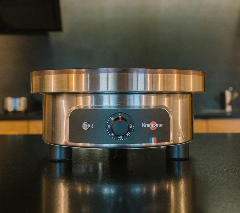 A unique Krampouz process: coil heating elements are embedded in the cooking plate to ensure even heat distribution to the cast iron core. This allows for even heating and excellent cooking performance.