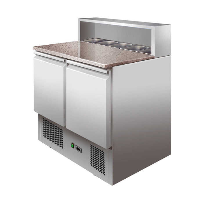 0784 111 212 Refrigerated table for pizza preparation, with 2 doors, a stainless steel superstructure, with a capacity of 5 GN 1/6 containers;