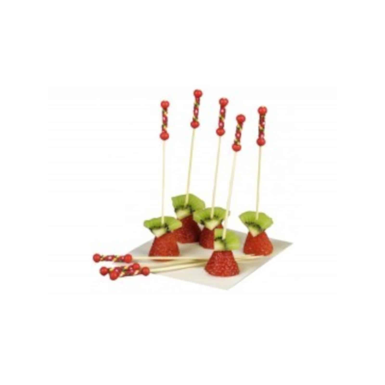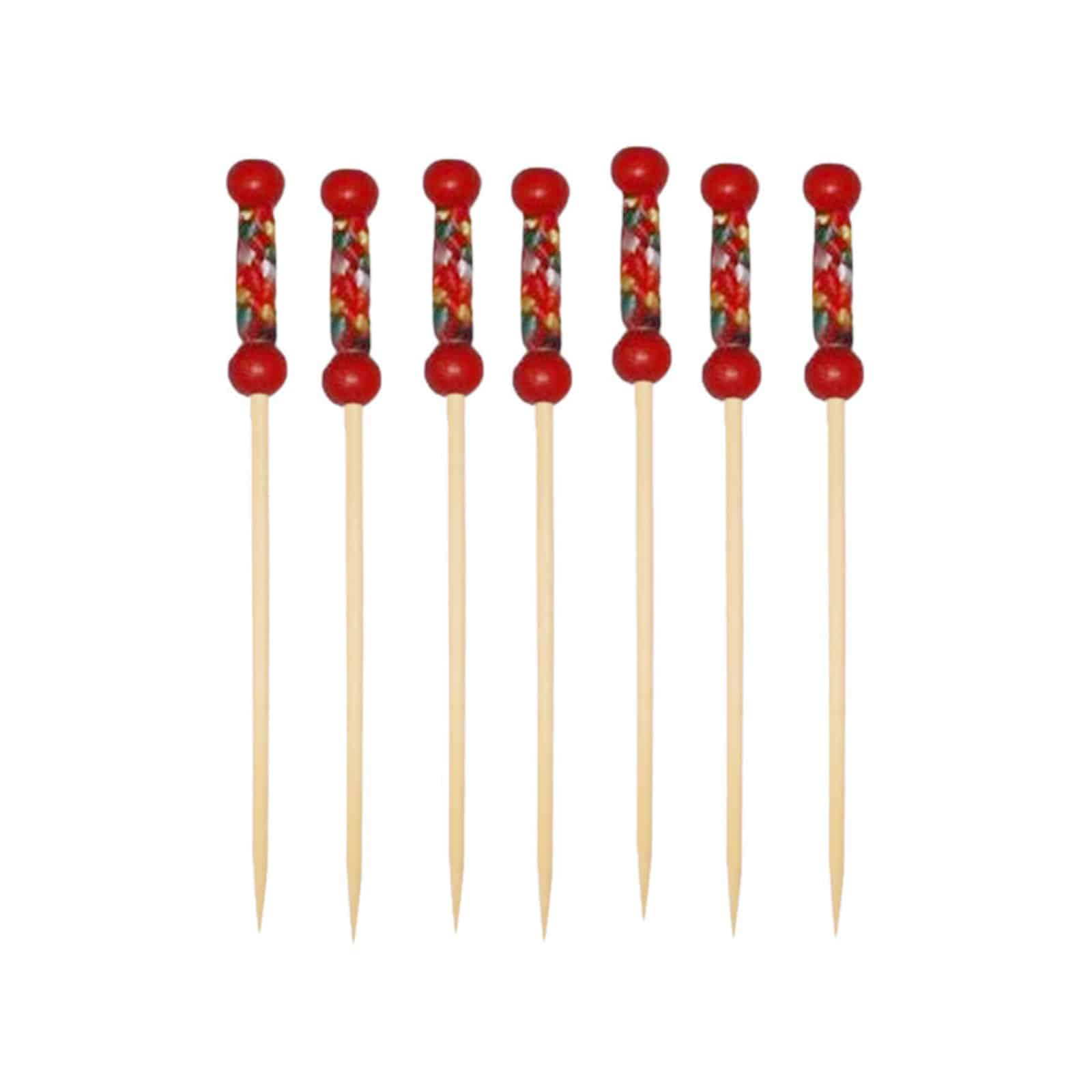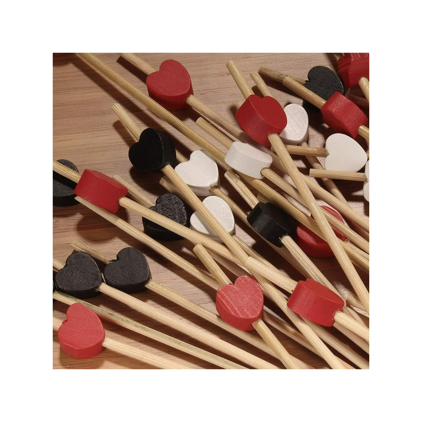 Available in four attractive designs - Golden Ball, Red Tip, Cocktail Red and Heart - they will add a touch of charm and personality to any cocktail or aperitif . With a length of 120 mm and a diameter of 5 mm, these toothpicks are easy to handle and offer a comfortable grip.