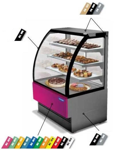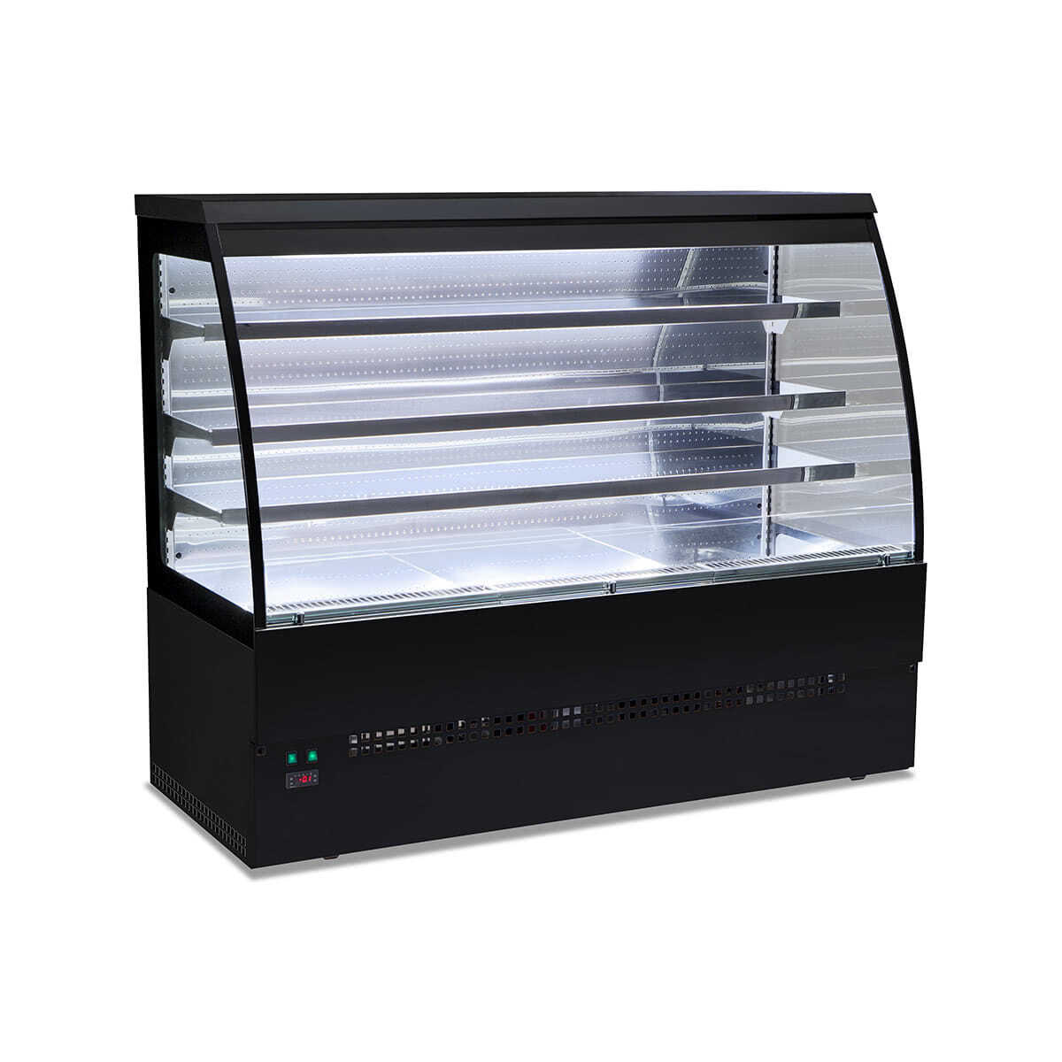 The curved glass window and 3 independently illuminated shelves, in addition to the top light, provide very good visibility of the products on display.