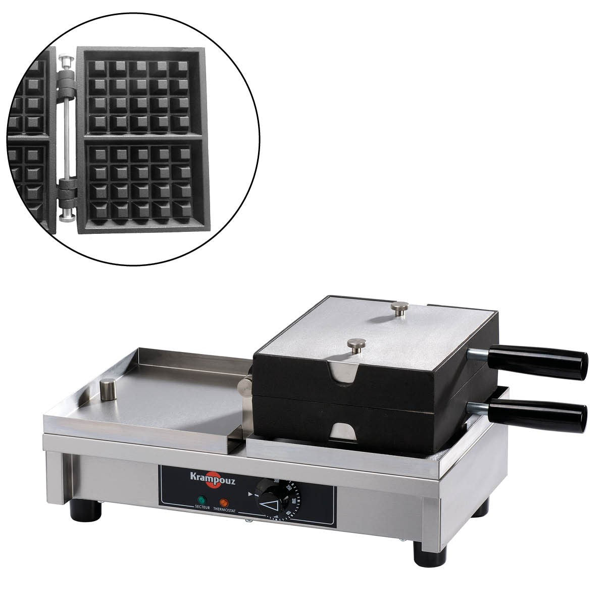 Aparat pentru vafe deschidere 180°, stânga-dreapta, simplu, 4x5 Liege, Krampouz