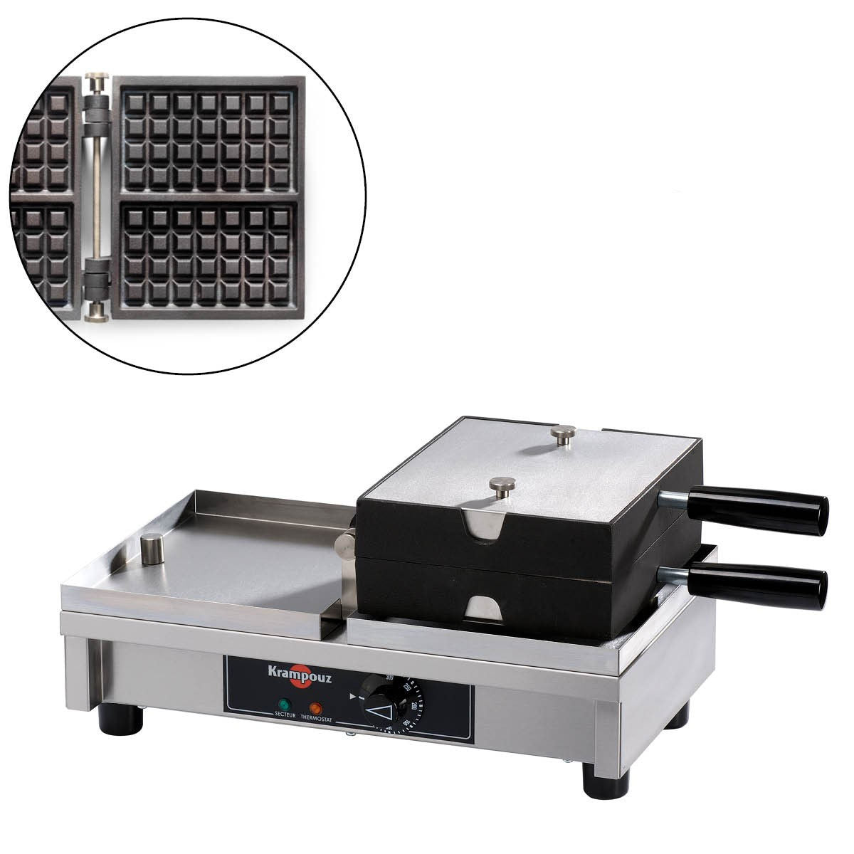 Aparat pentru vafe deschidere 180°, stânga-dreapta, simplu, 4x7 Bruxelles, Krampouz