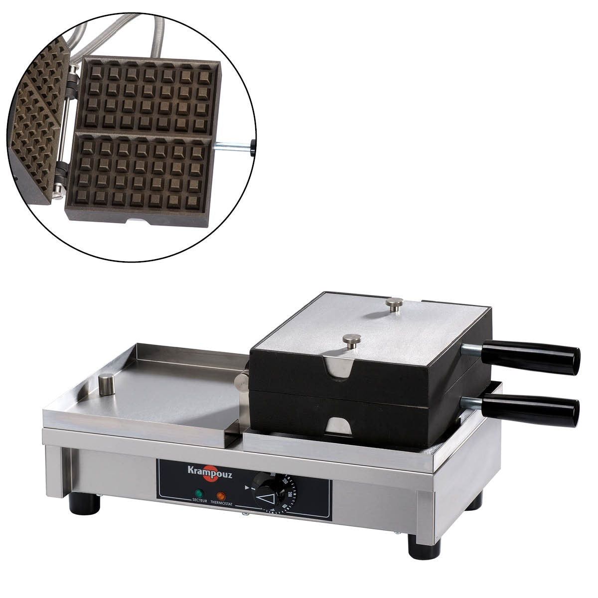 Aparat pentru vafe deschidere 180°, stânga-dreapta, simplu, 4x7 Liege, Krampouz