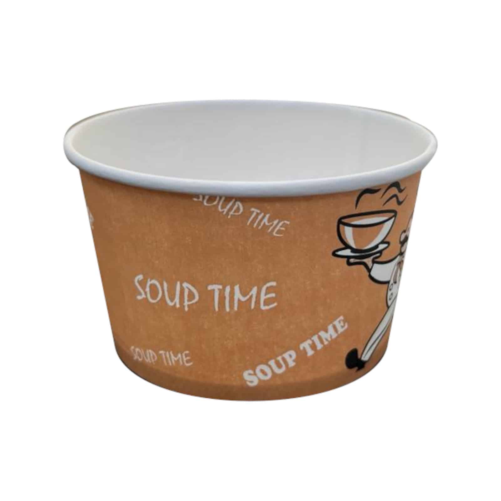Fabricată din carton dublu poli-acoperit, bolul este rezistent la umiditate, permițându-i să țină lichide și alimente consistente fără scurgeri. În plus, marginea rulată este netedă la atingere, facilitând consumarea de supă atunci când clienții nu au timp pentru prânz sau cină.