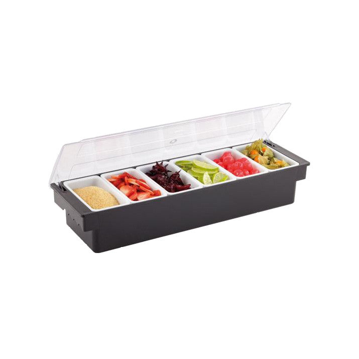 0742 141 099Recipient/container/organizator 6 compartimente pentru condimente, confecționat din polipropilenă, ABS si policarbonat.
