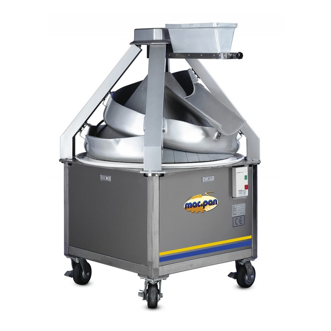 Ideal pentru rotunjirea aluatului moale și mediu. Efectul de rulare este realizat prin intermediul unui con, care, în timp ce se rotește, rotește aluatul de-a lungul unui drum concav în formă de spirală și permite producerea de pâini sferice.