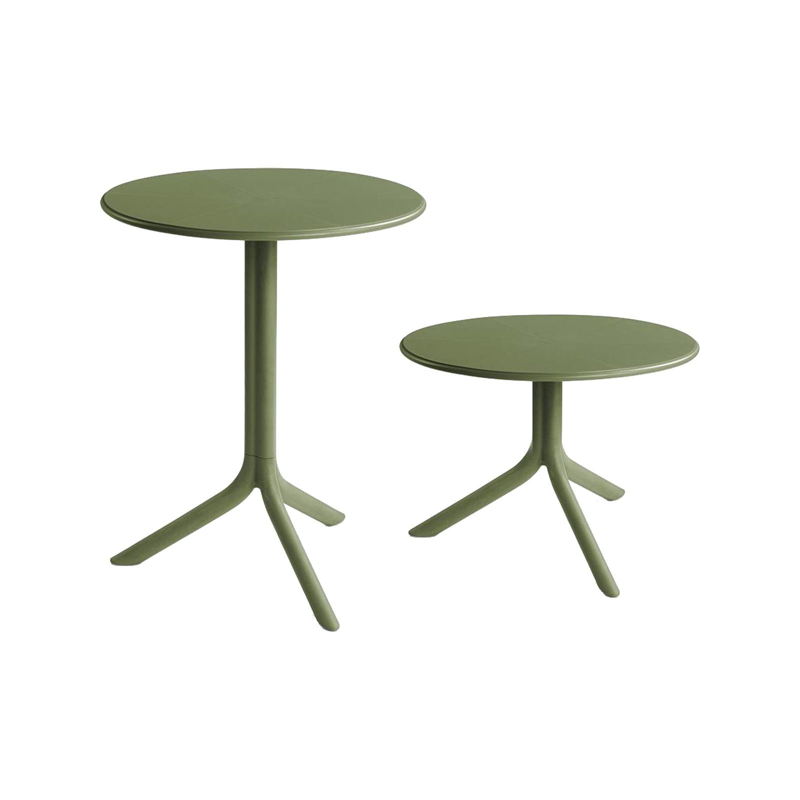 Masă joasă din polipropilenă cu fibră de sticlă, cu aditivi UV, cu partea superioară a suprafeței, rotunde și bază cu trei picioare, potrivită pentru utilizare în exterior, dar perfectă și ca mobilier interior.