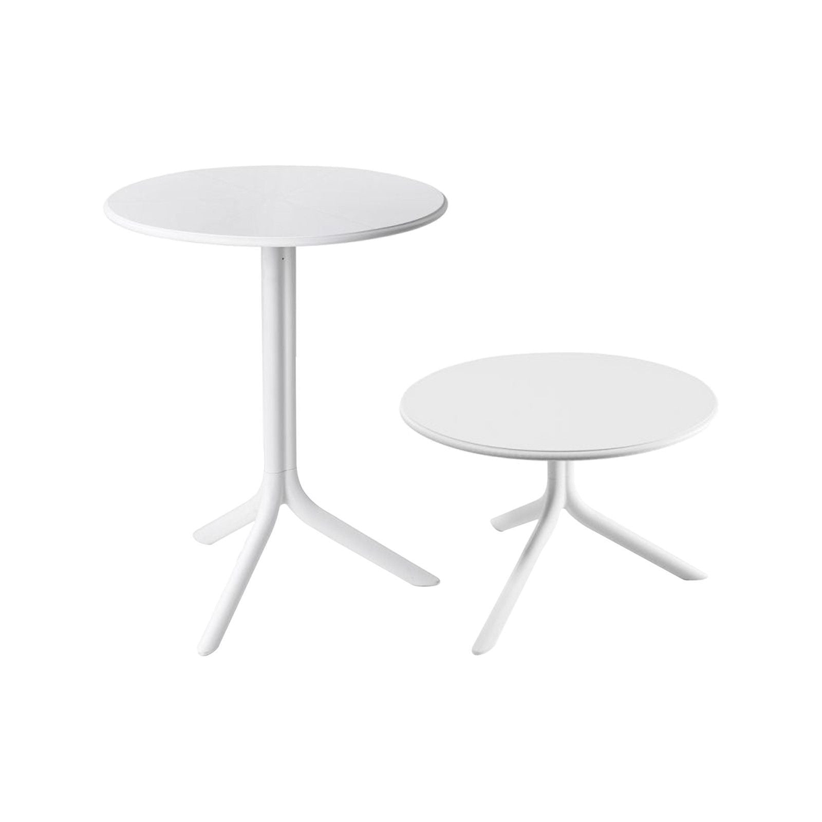 0784 111 212Masă joasă din polipropilenă cu fibră de sticlă, cu aditivi UV, cu partea superioară a suprafeței, rotunde și bază cu trei picioare, potrivită pentru utilizare în exterior, dar perfectă și ca mobilier interior.