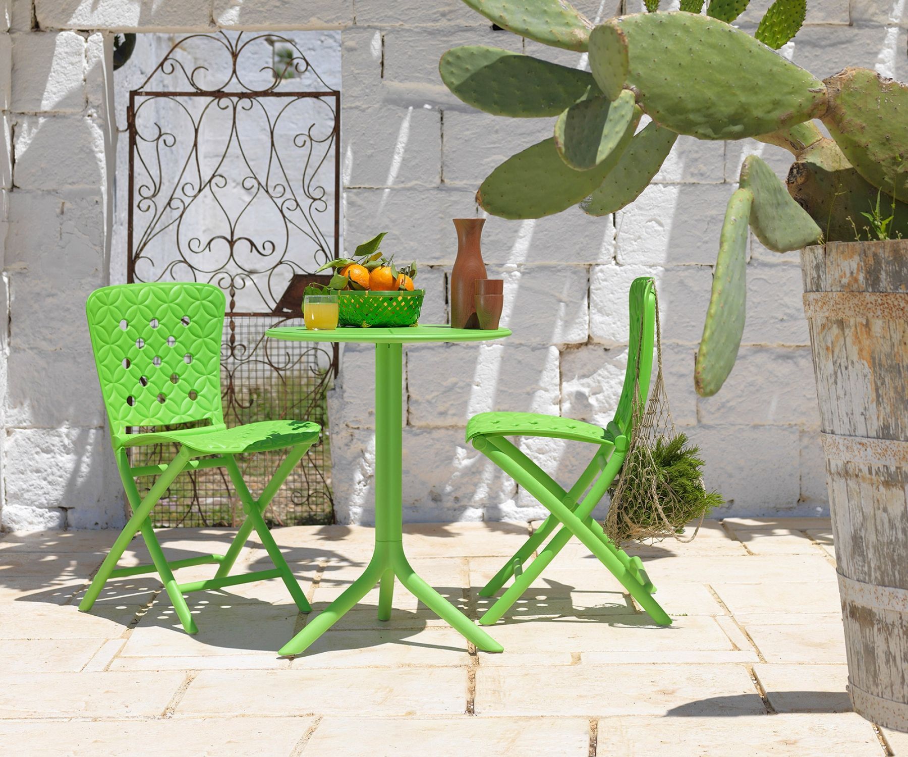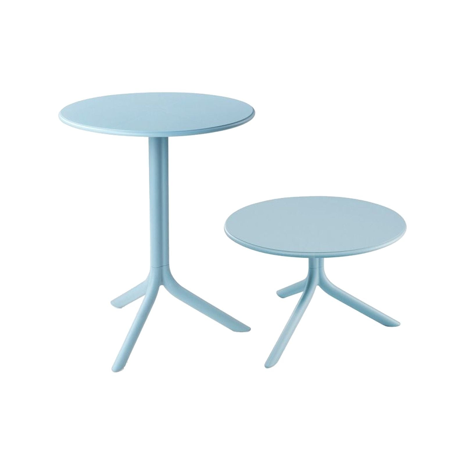 Masă joasă din polipropilenă cu fibră de sticlă, cu aditivi UV, cu partea superioară a suprafeței, rotunde și bază cu trei picioare, potrivită pentru utilizare în exterior, dar perfectă și ca mobilier interior.