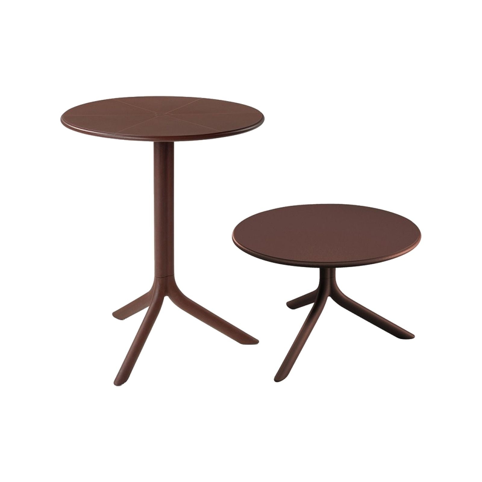 Masă joasă din polipropilenă cu fibră de sticlă, cu aditivi UV, cu partea superioară a suprafeței, rotunde și bază cu trei picioare, potrivită pentru utilizare în exterior, dar perfectă și ca mobilier interior.