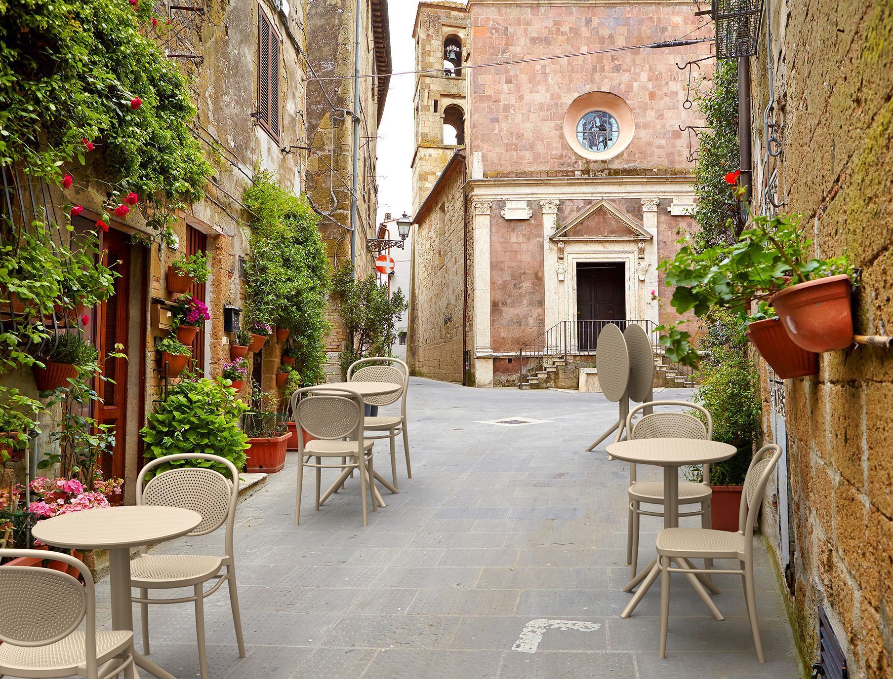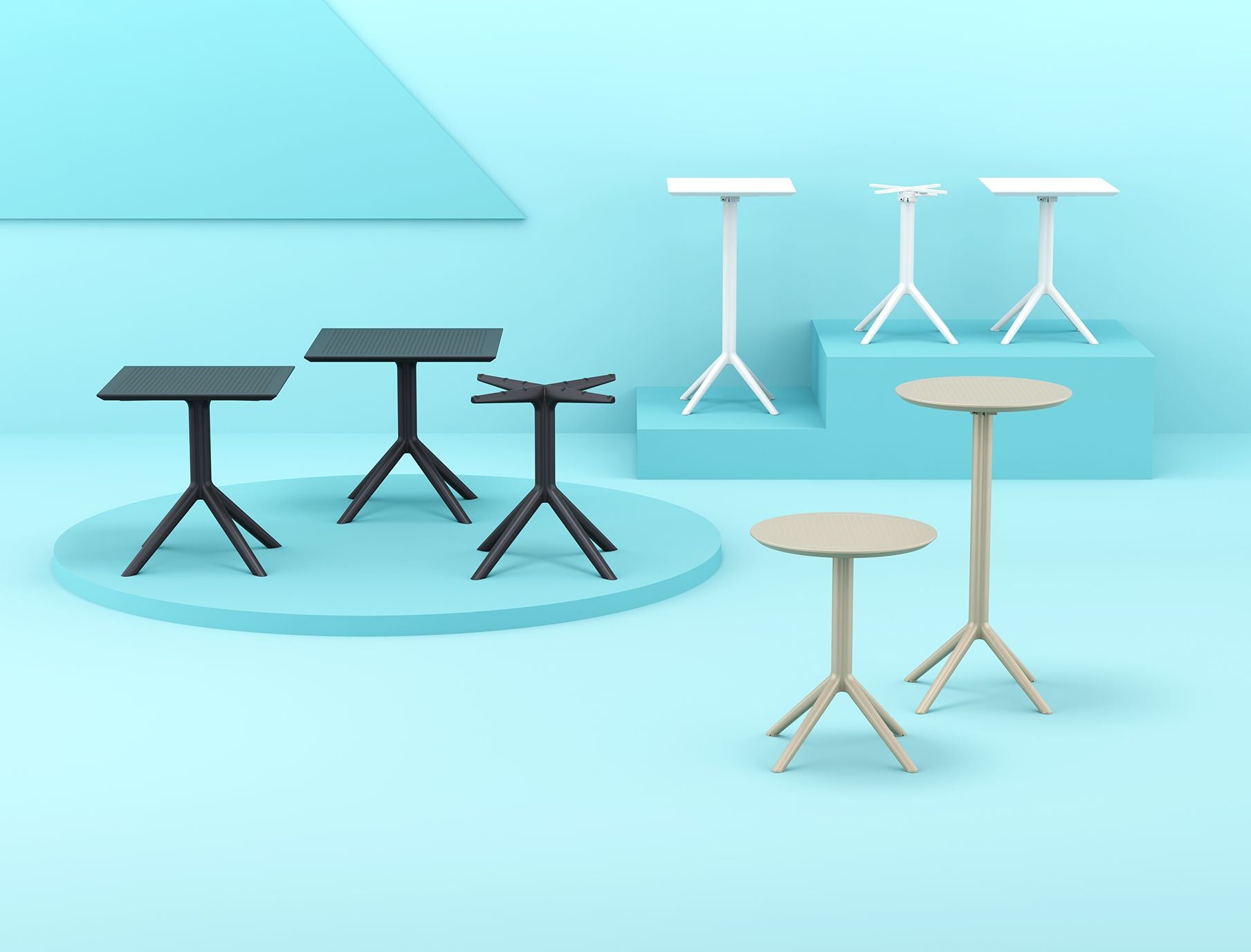 Masa pliabilă Sky este fabricată din rășină rezistentă la intemperii.