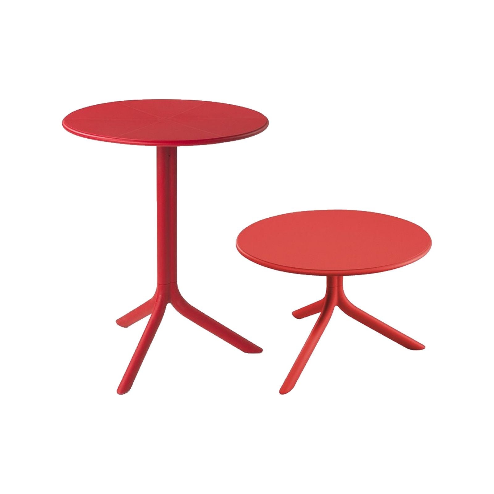 Masă joasă din polipropilenă cu fibră de sticlă, cu aditivi UV, cu partea superioară a suprafeței, rotunde și bază cu trei picioare, potrivită pentru utilizare în exterior, dar perfectă și ca mobilier interior.