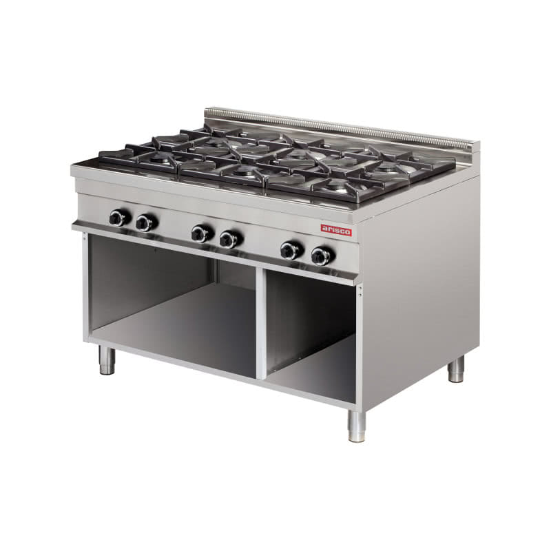 Mașină de gătit, GPL sau gaz, pe suport deschis, 6 arzătoare, Linia 900, Arisco