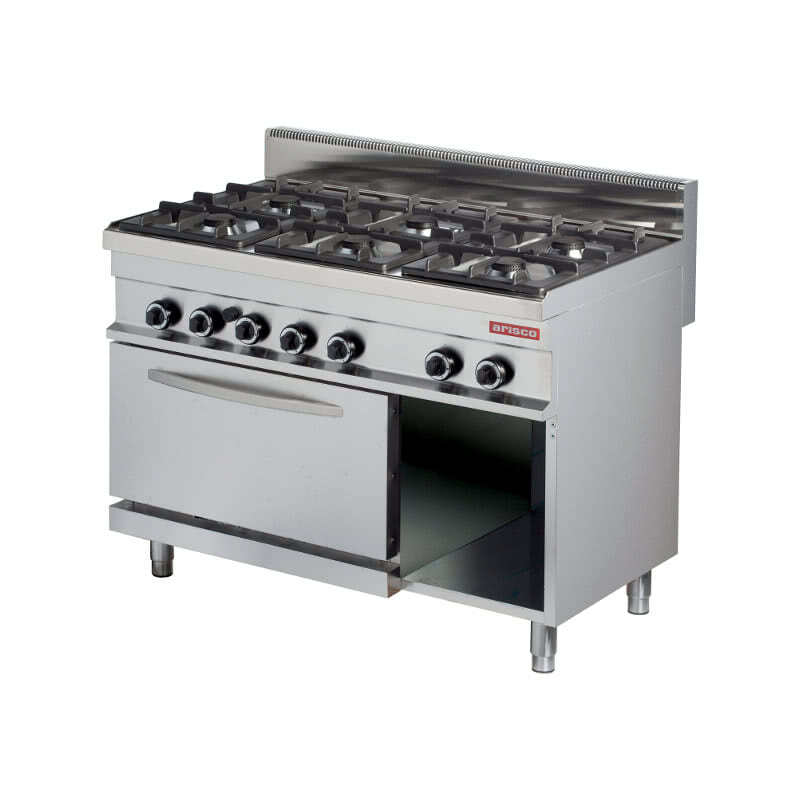 Mașină de gătit, GPL sau gaz, pe suport și cuptor pe gaz, 6 arzătoare, Linia 700, Arisco
