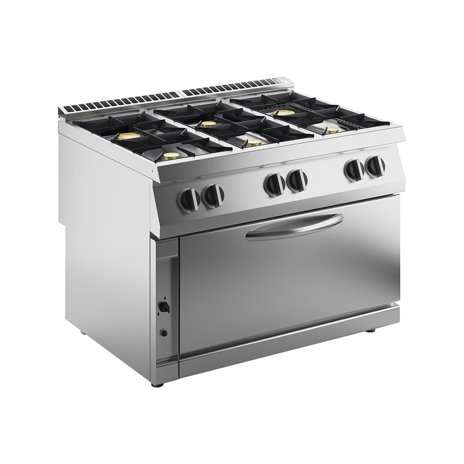 Mașină de gătit, GPL sau gaz, pe suport și cuptor pe gaz Maxi, 6 arzătoare, Linia 900, Silko