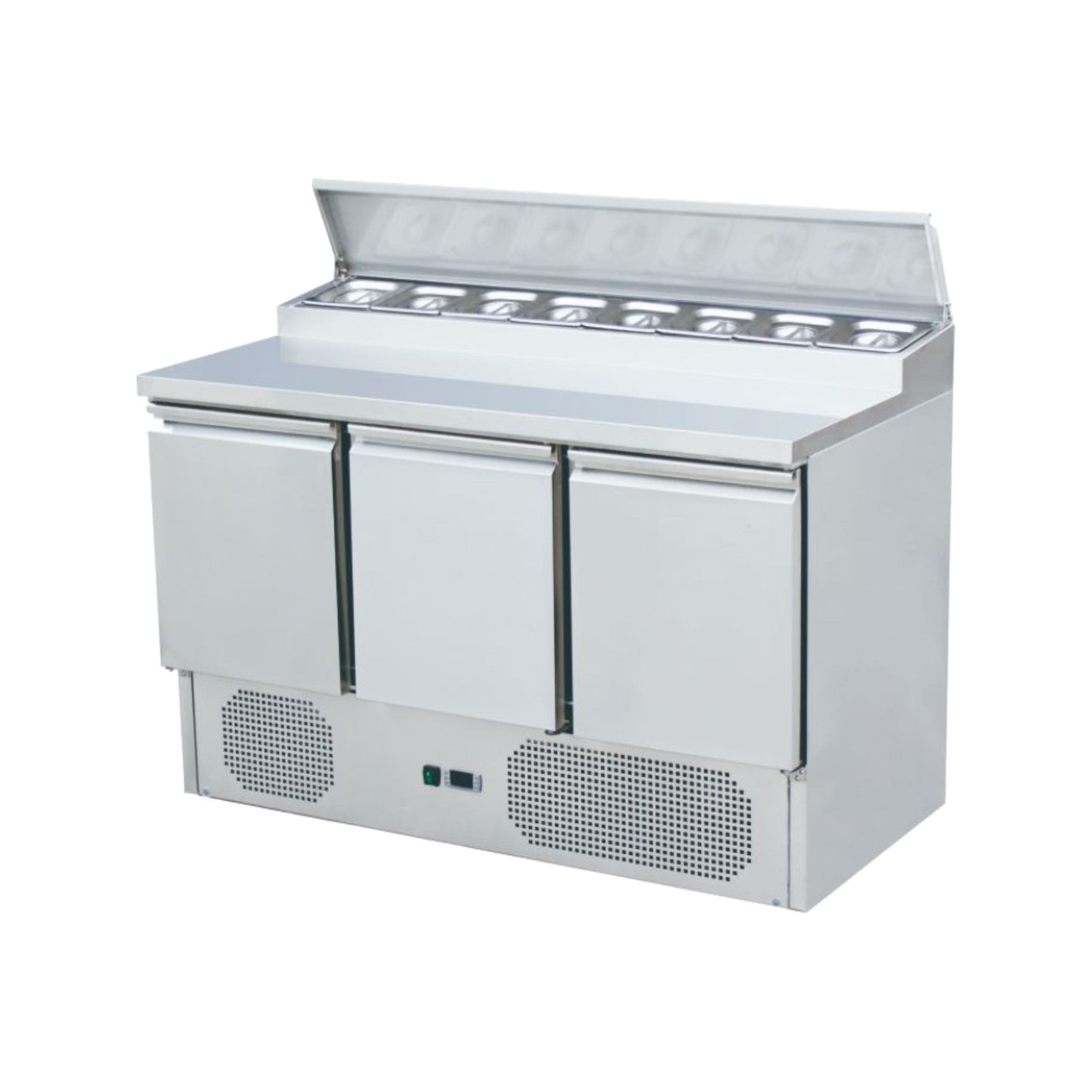 Saladeta este caracterizată și de vitrina de răcire integrată cu capac din oțel inoxidabil.