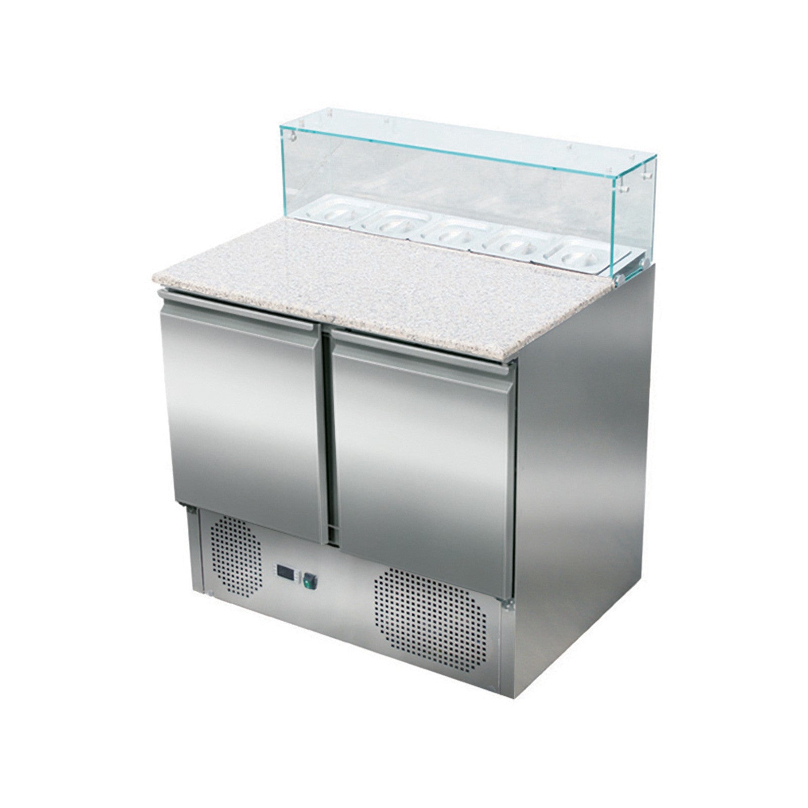 Blat de lucru din granit de 40 mm, răcire ventilată, agregat încorporat, rafturi ajustabile pentru vaschete GN 1/1;