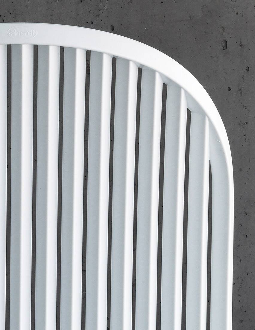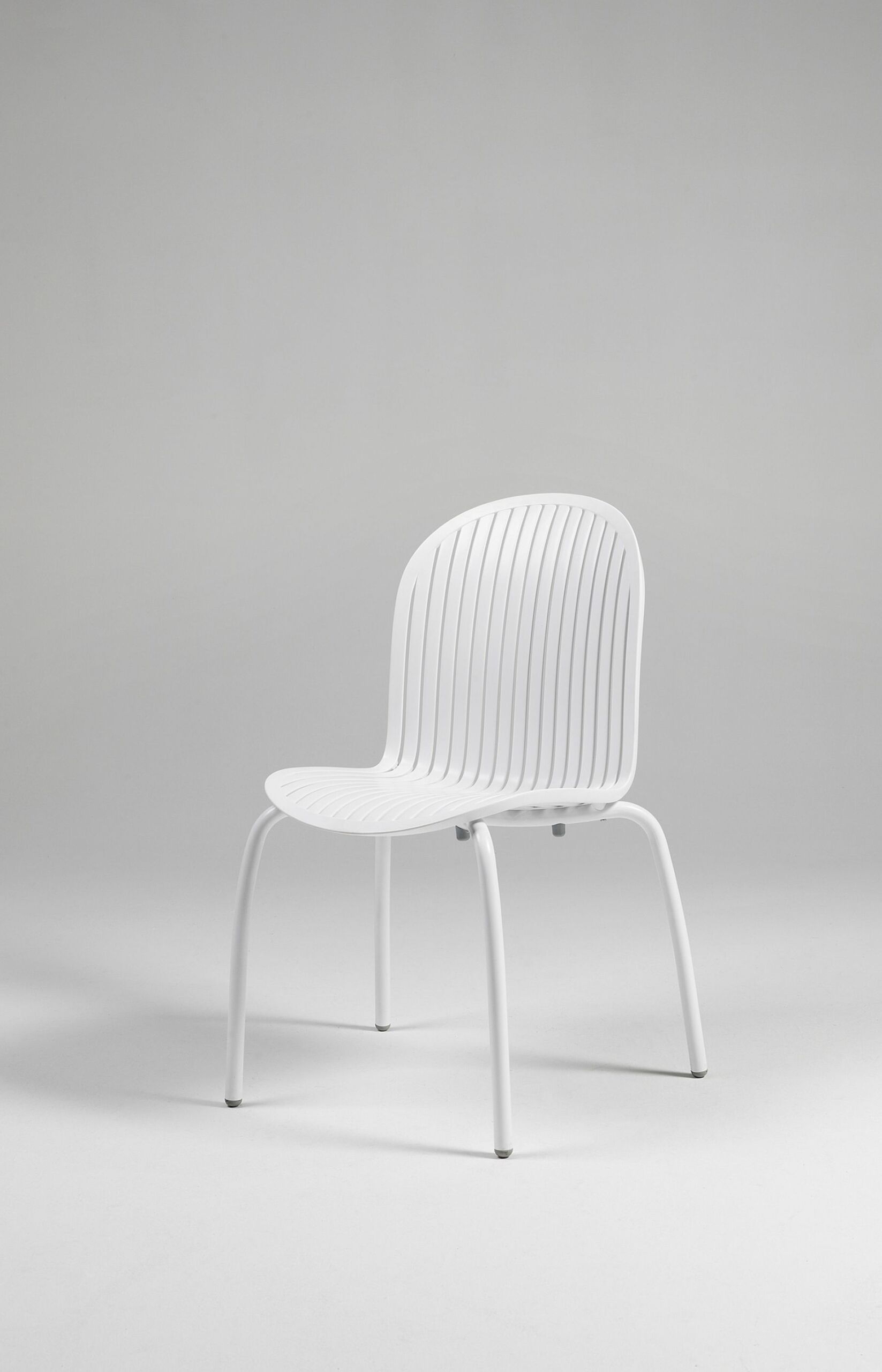 Scaunul este rezistent la UV, cu picioare antiderapante și finisaj mat.