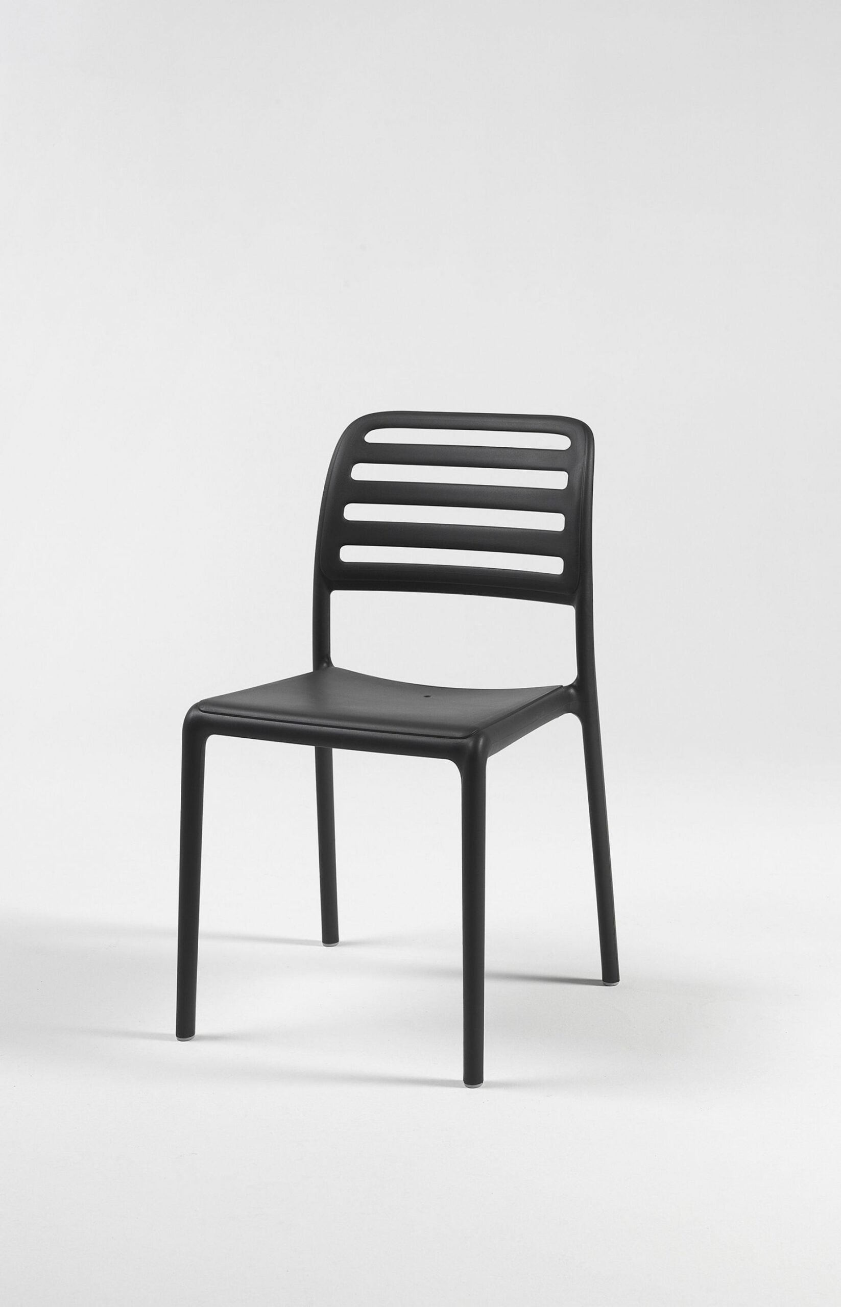 Costa Bistrot este un scaun de exterior cu spătar ce are lamele din rășină din fibră de sticlă: un cadru din rășină tubulară fără sudură cu profil și colțuri rotunjite.