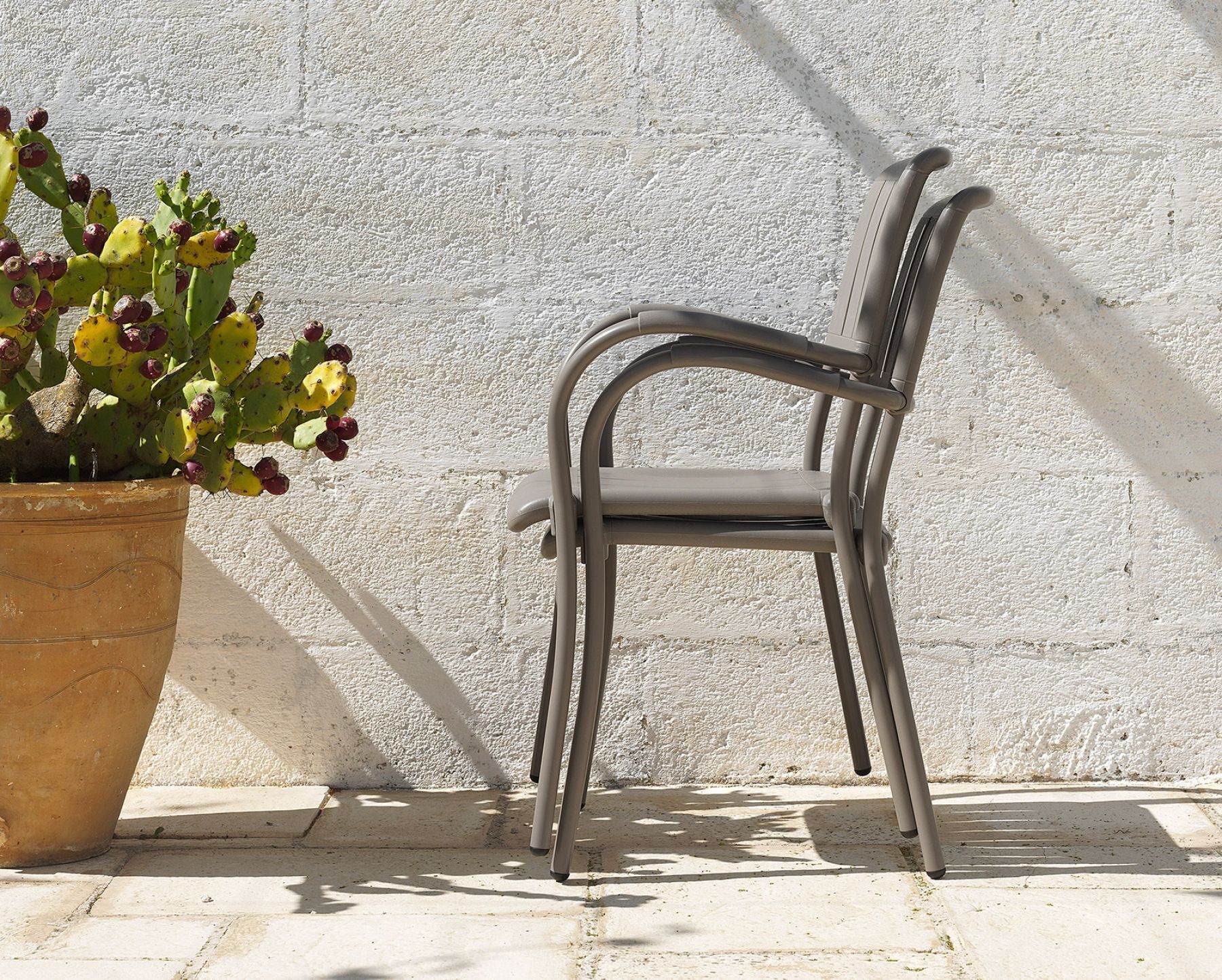 0784 111 212MUSA este un scaun din polipropilenă cu aditivi UV, mare și confortabil pentru utilizare în exterior, cu cotiere și picioare din aluminiu vopsit.