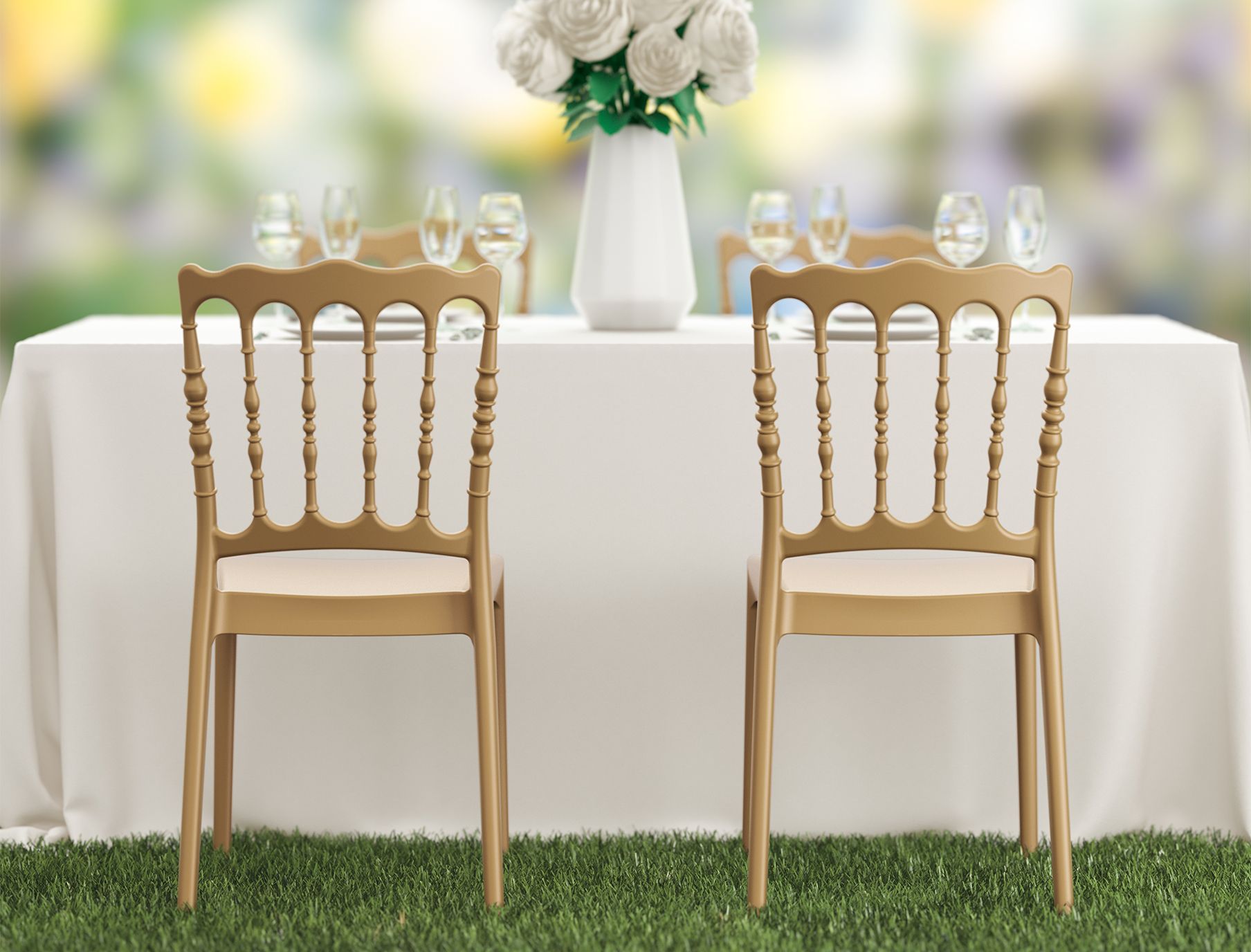 0784 111 212Scaunul de nunta Napoleon este produs dintr-o singura injecție de polipropilena armata cu fibra de sticla obtinuta prin intermediul tehnologiei de ultima generație de modelare cu aer cu tonuri neutre. Pentru uz interior și exterior.