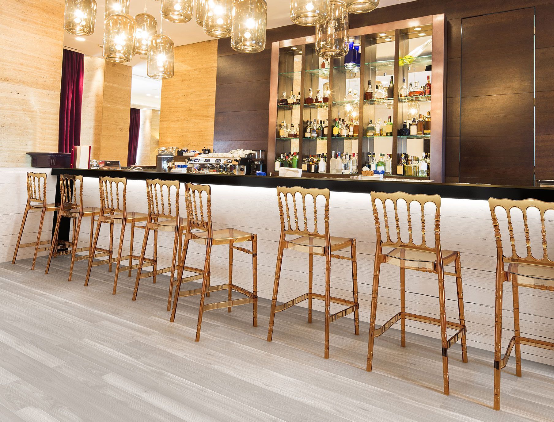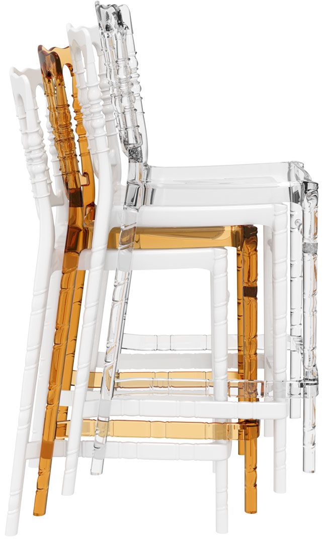 Scaunul Opera Bar este confecționat din policarbonat transparent sau lucios.