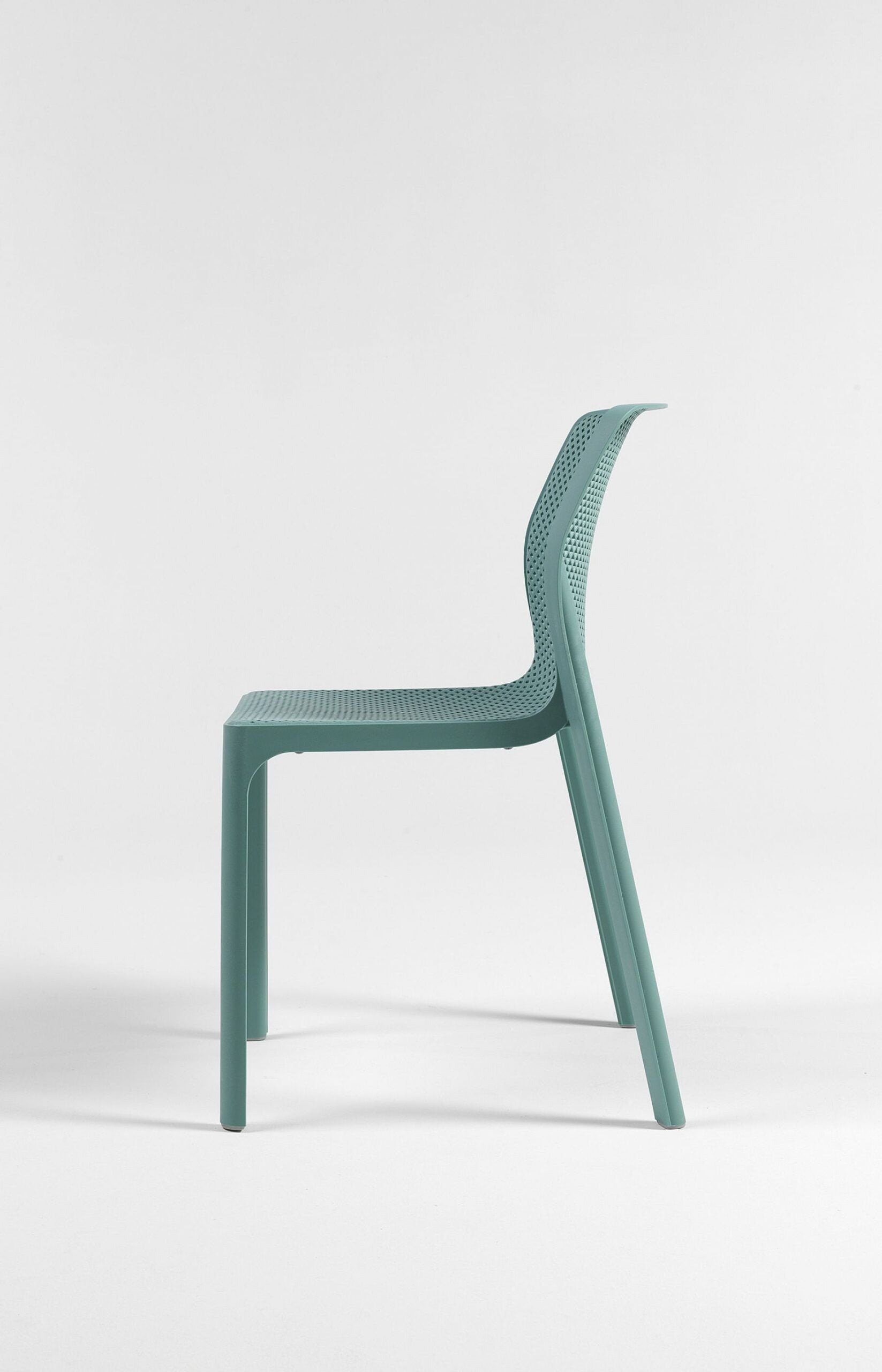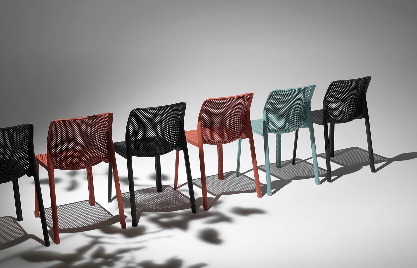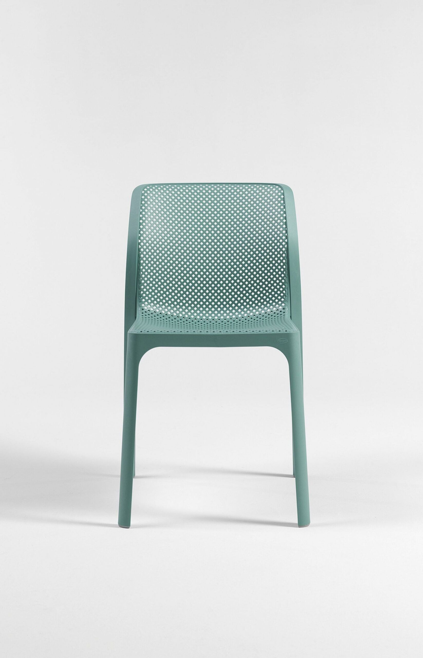 Scaunul BIT are un design rafinat, nu are cotiere și este confecționat din rășină din fibră de sticlă tratată pentru razele UV.