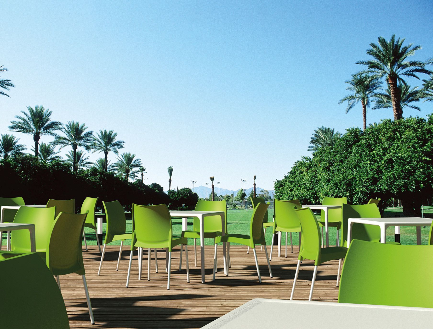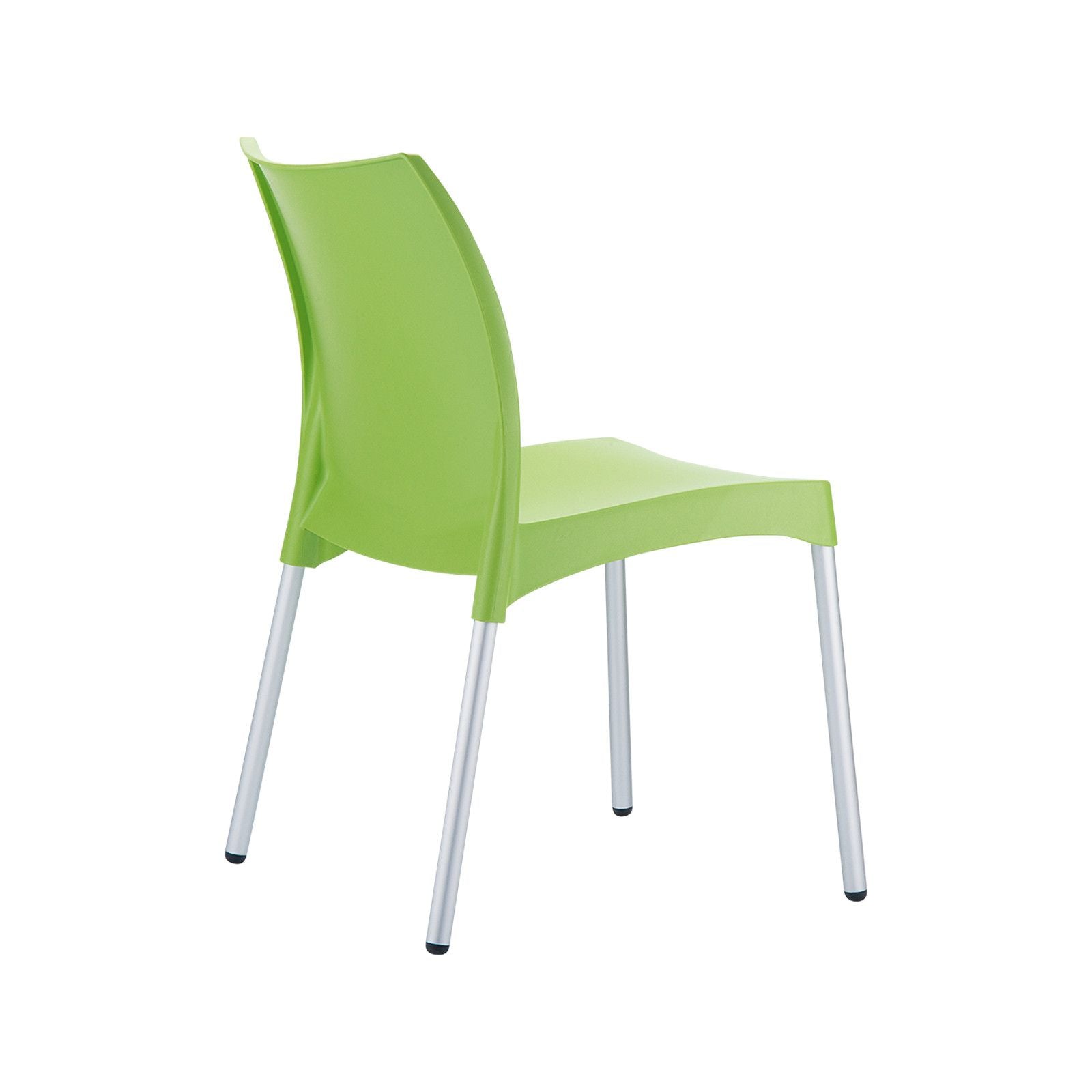 0784 111 212Scaun stivuibil cu șezut și spătar din polipropilenă și picioare din aluminiu cu diametru 25 mm.
