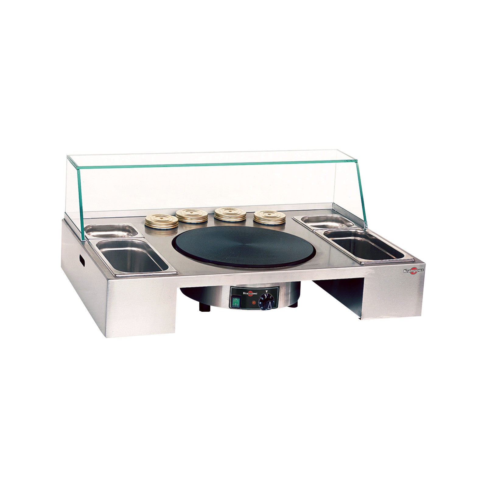 Conceput pentru a satisface nevoile profesioniștilor de clătite, acest sistem de lucru are două vase GN 1/3 pentru depozitarea aluatului de clătite, două vaschete GN 1/6 pentru depozitarea alimentelor.