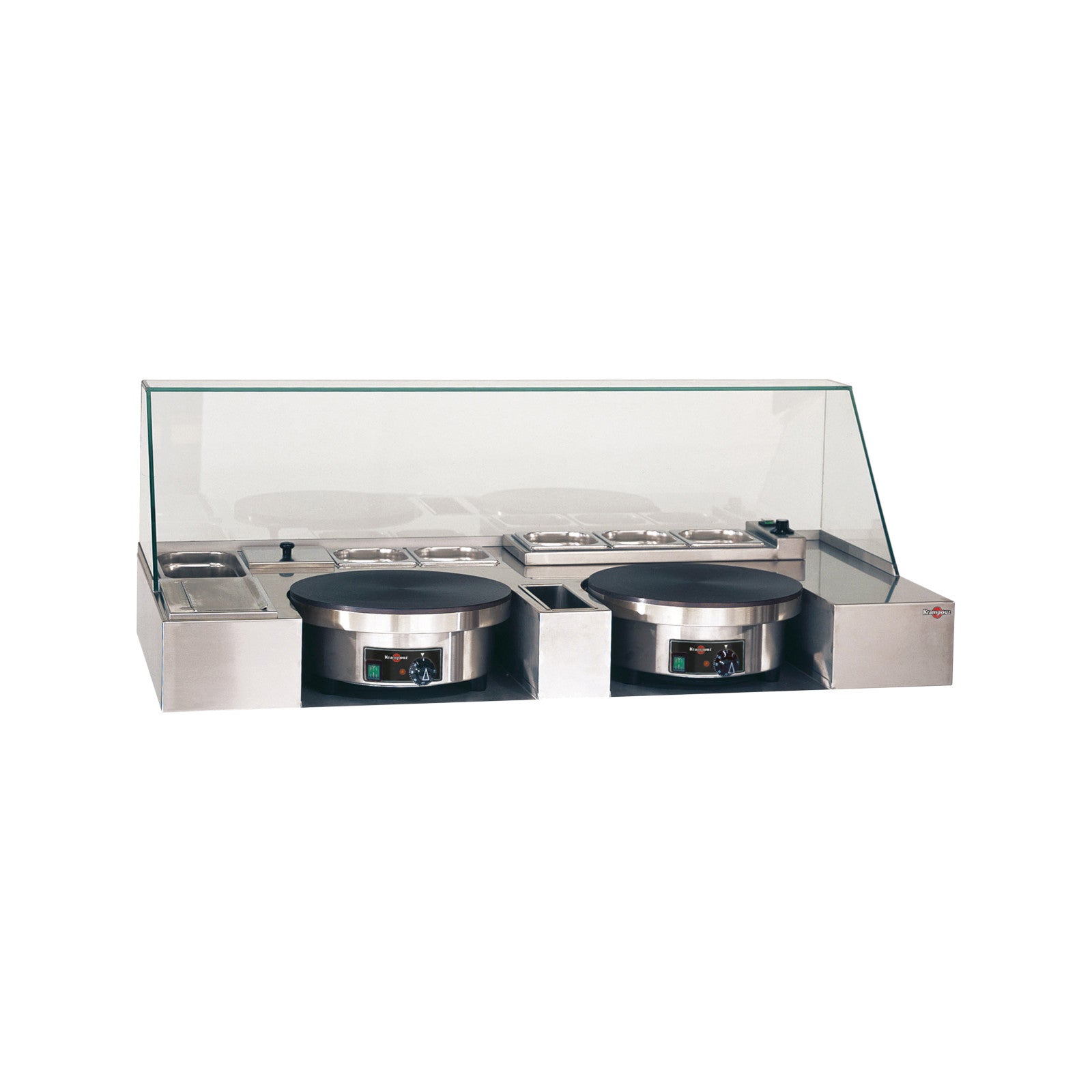 Stație de lucru dublă, de masă pentru clătite, cu bain-marie și vitrină, Krampouz