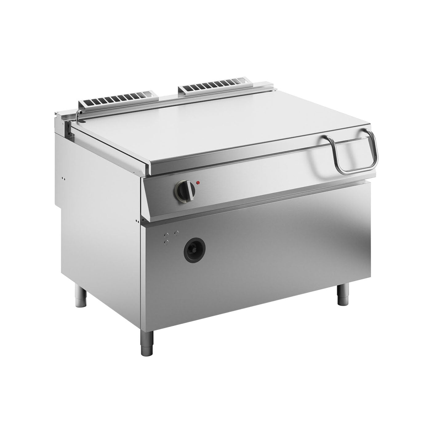 Rezervor de gătit cu mecanism de înclinare manual/automat, construit din oțel inoxidabil, în formă dreptunghiulară, cu colțuri radiate pentru o curățare ușoară.
