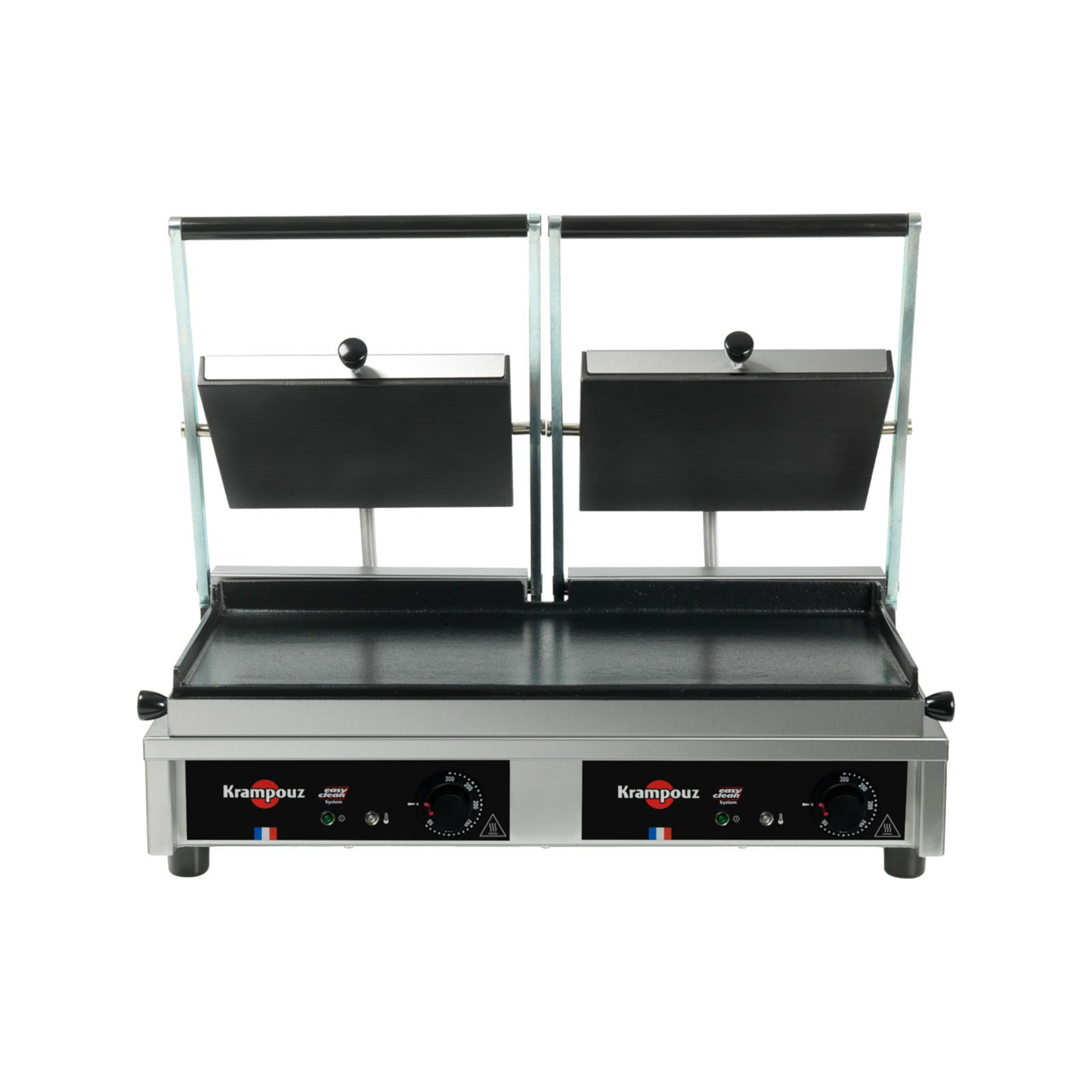 Două plăci superioare cu echilibrare automată se adaptează la diferite grosimi ale alimentelor, astfel încât să puteți pregăti simultan mai multe articole pe cele două zone de gătit.