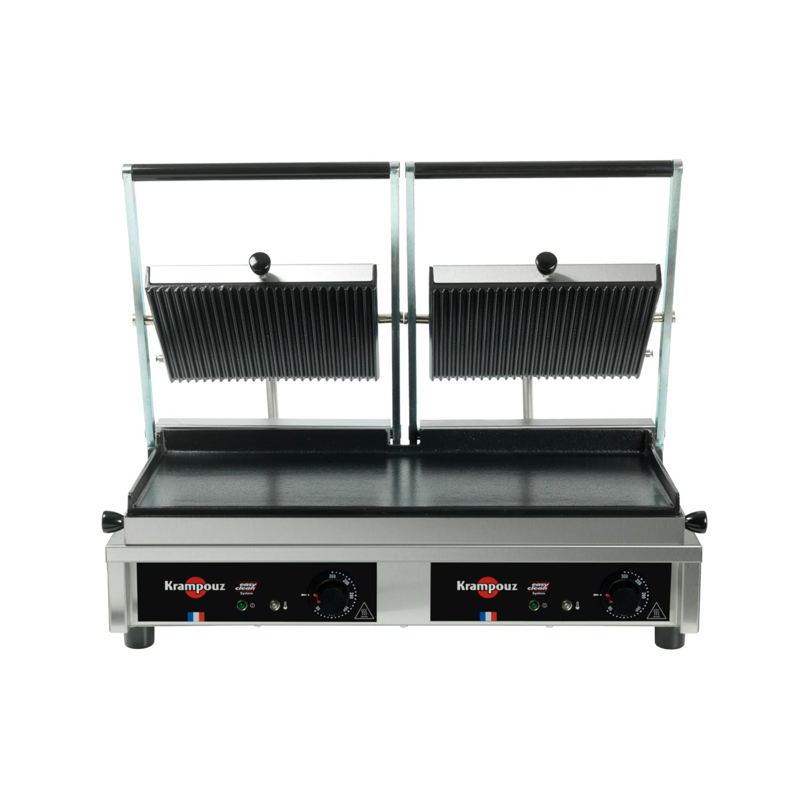 0784 111 212Grill Multi Contact dublu cu plăci superioare striate și placă inferioară netedă.